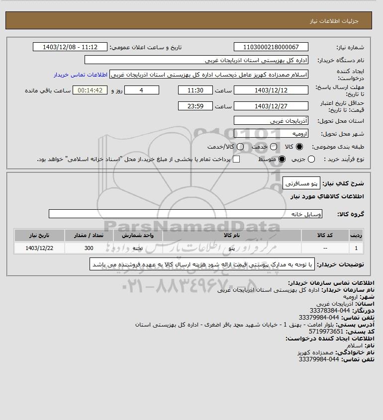 نام دستگاه خریدار:اداره کل بهزیستی استان اذربایجان غربی
