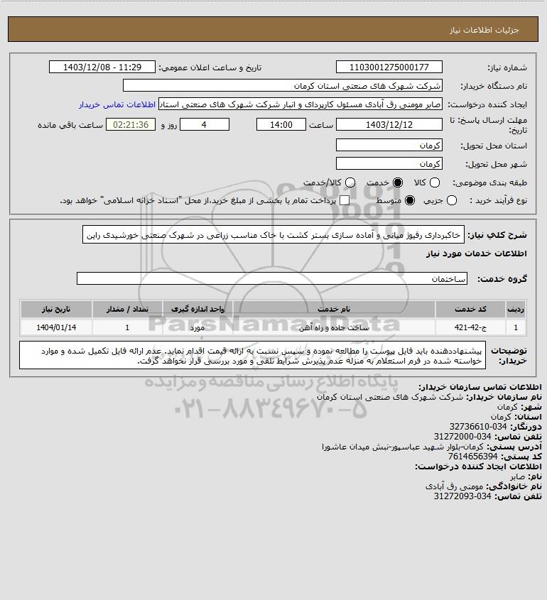 نام دستگاه خریدار:شرکت شهرک های صنعتی استان کرمان