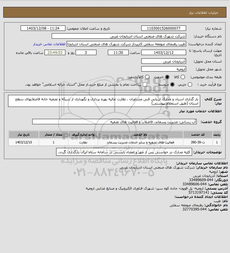 نام سازمان خریدار: شرکت شهرک های صنعتی استان اذربایجان غربی