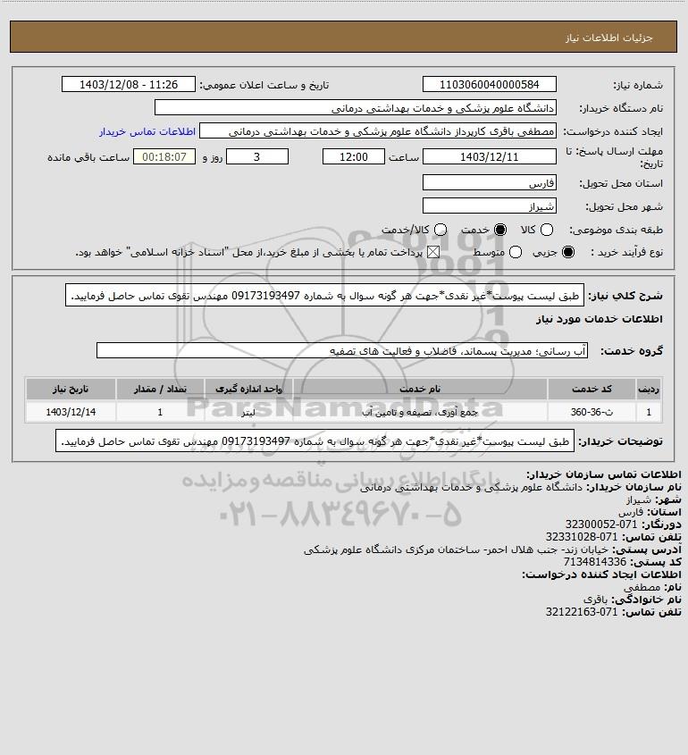 شرح کلی نیاز: طبق لیست پیوست*غیر نقدی*جهت هر گونه سوال به شماره 09173193497 مهندس تقوی تماس حاصل فرمایید.