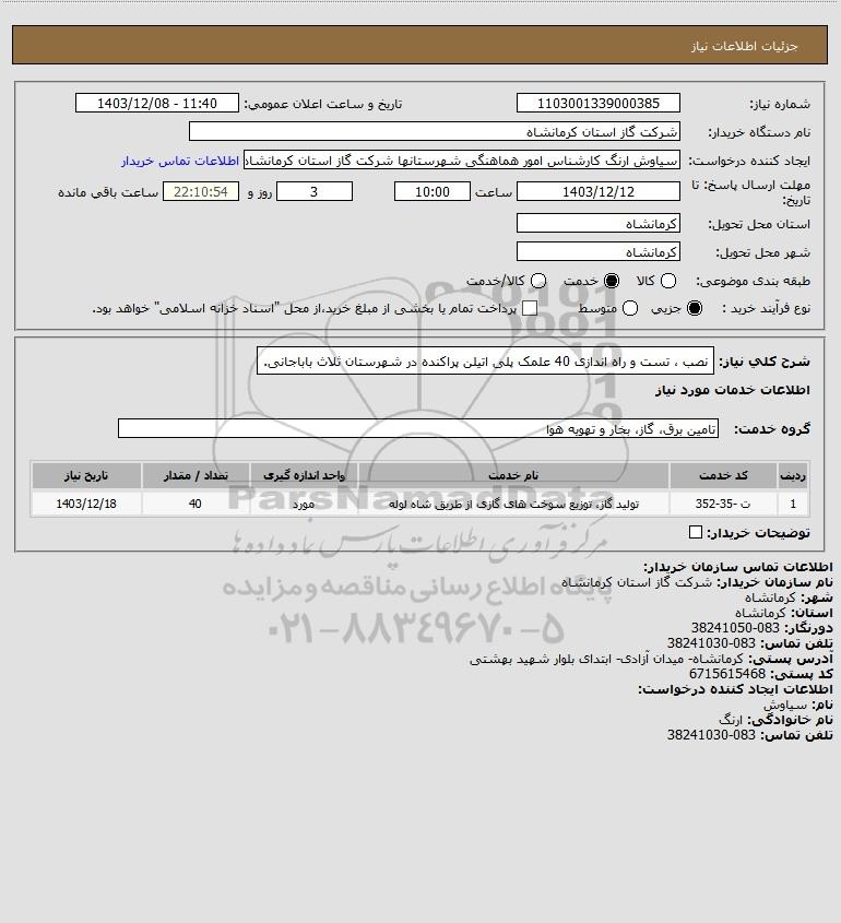 نام سازمان خریدار: شرکت گاز استان کرمانشاه