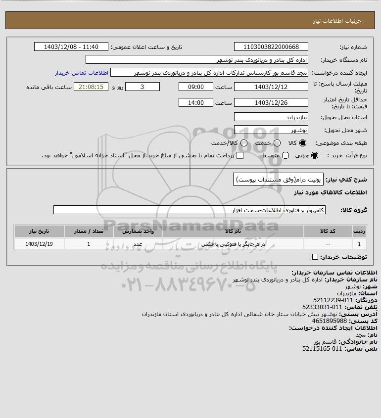 نام دستگاه خریدار:اداره کل بنادر و دریانوردی بندر نوشهر