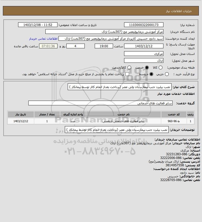 نام دستگاه خریدار:مرکز آموزشی درمانیولیعصر عج (307تخت) اراک