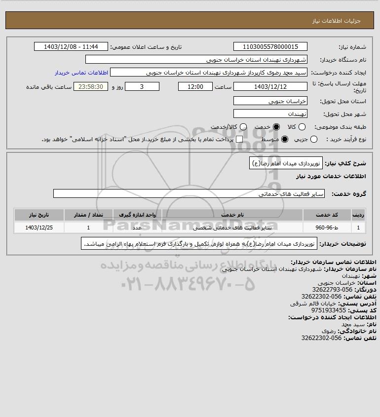 نام دستگاه خریدار:شهرداری نهبندان استان خراسان جنوبی
