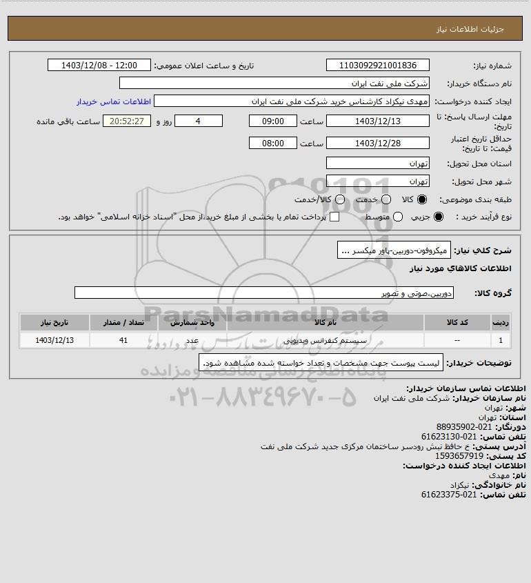 شرح کلی نیاز: میکروفون-دوربین-پاور میکسر ...