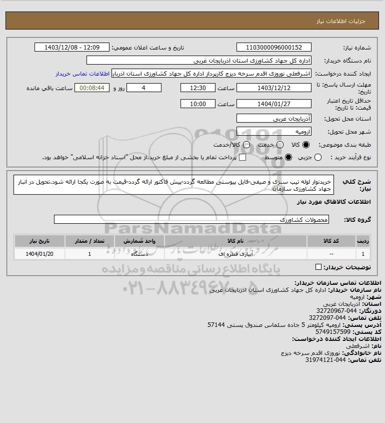 نام دستگاه خریدار:اداره کل جهاد کشاورزی استان اذربایجان غربی