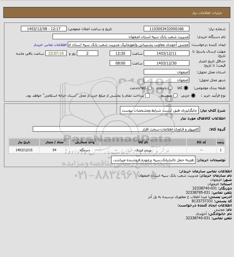 نام دستگاه خریدار:مدیریت شعب بانک سپه استان اصفهان
