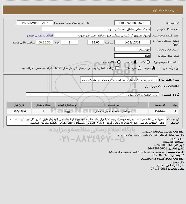 نام دستگاه خریدار:شرکت ملی مناطق نفت خیز جنوب