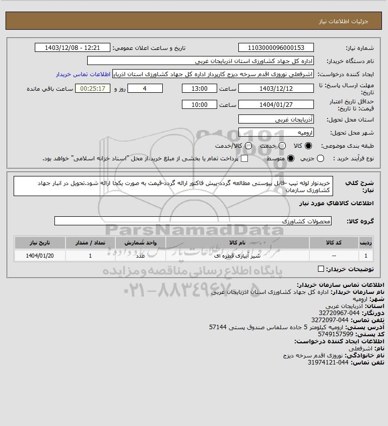 نام دستگاه خریدار:اداره کل جهاد کشاورزی استان اذربایجان غربی