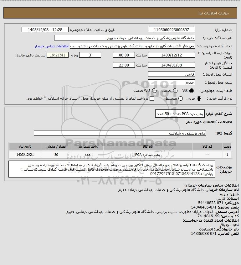 شرح کلی نیاز: پمپ درد PCA تعداد : 50 عدد