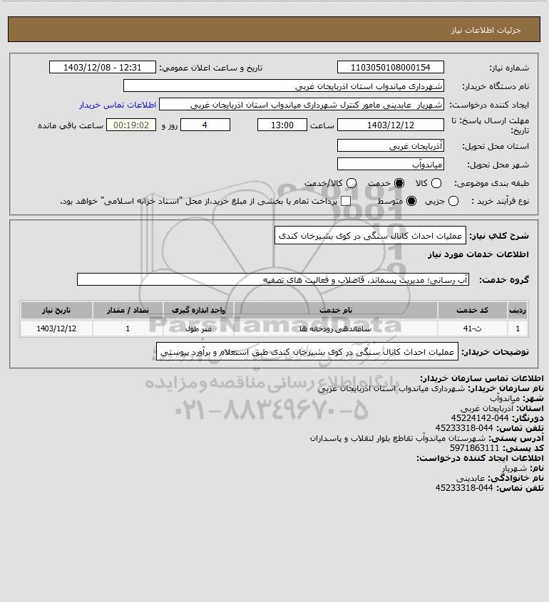 شرح کلی نیاز: عملیات احداث کانال سنگی در کوی بشیرخان کندی