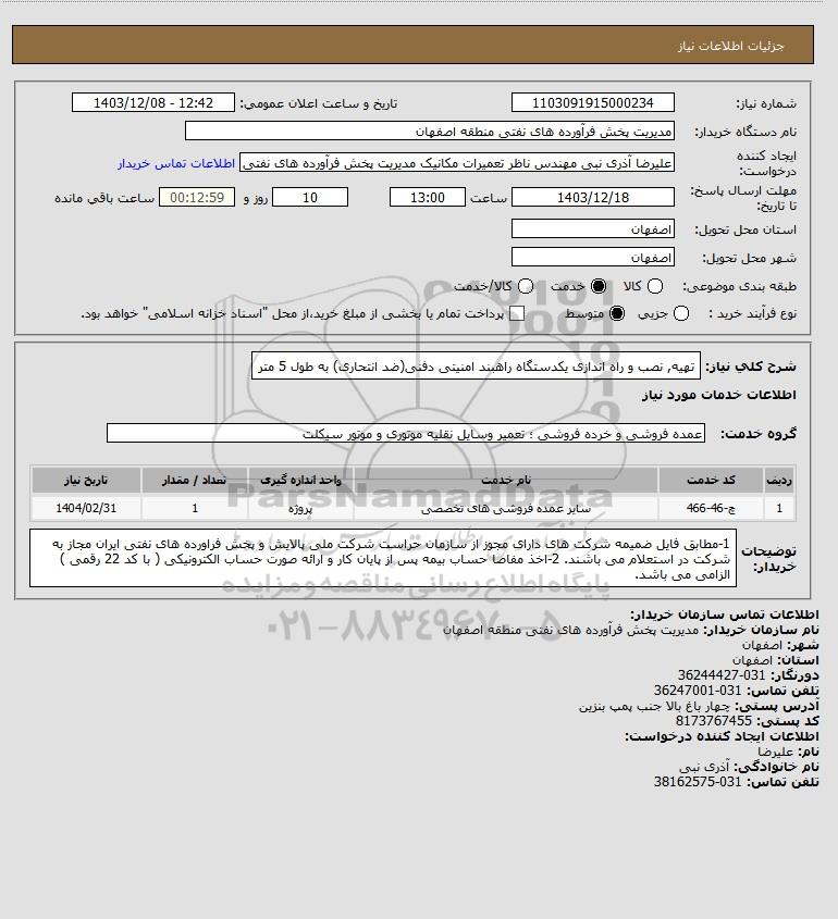 نام دستگاه خریدار:مدیریت پخش فرآورده های نفتی منطقه اصفهان