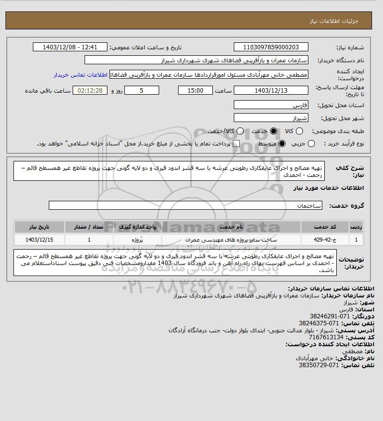 نام سازمان خریدار: سازمان عمران و بازآفرینی فضاهای شهری شهرداری شیراز