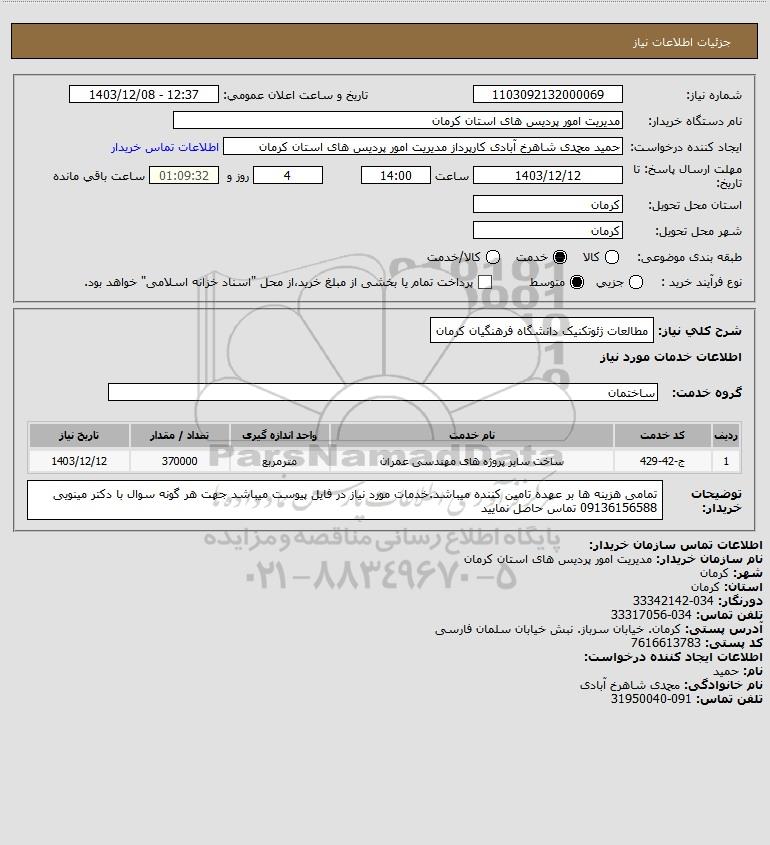 استعلام مطالعات ژئوتکنیک دانشگاه فرهنگیان کرمان, استعلام مطالعات ژئوتکنیک دانشگاه فرهنگیان کرمان