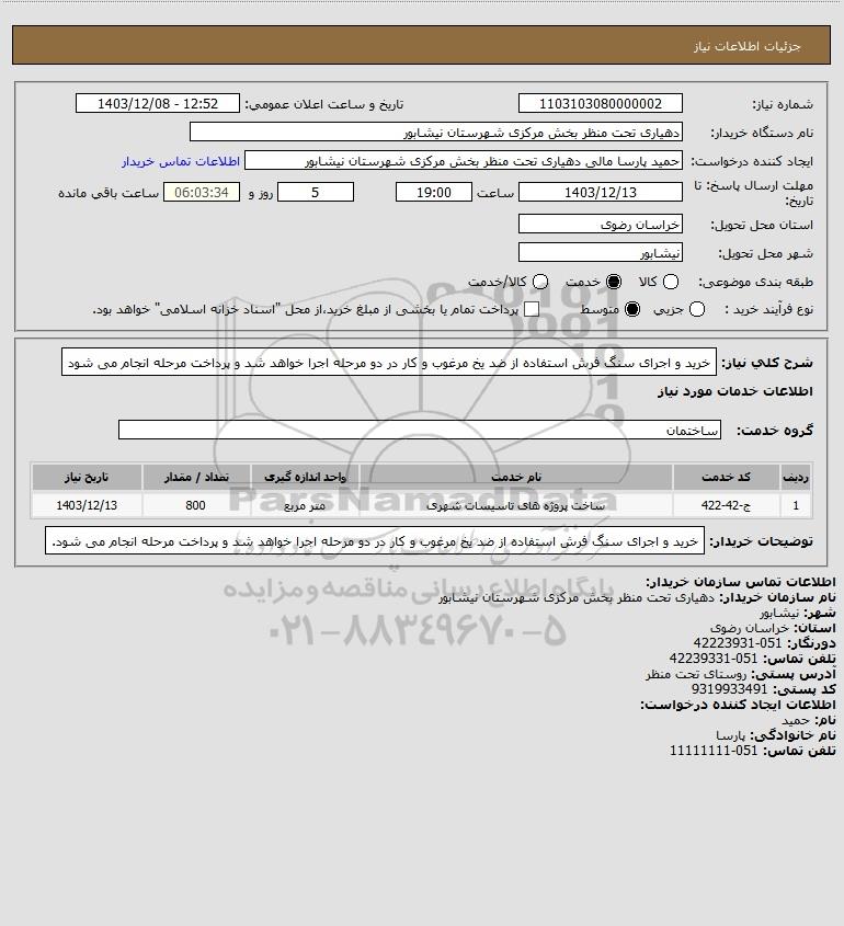 نام دستگاه خریدار:دهیاری تحت منظر بخش مرکزی شهرستان نیشابور
