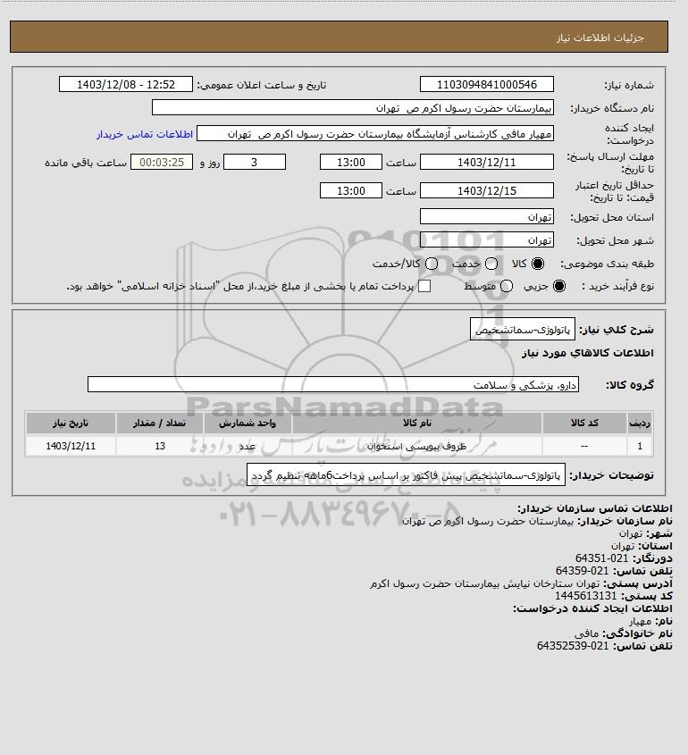 توضیحات خریدار:پاتولوژی-سماتشخیص پیش فاکتور بر اساس پرداخت6ماهه تنظیم گردد