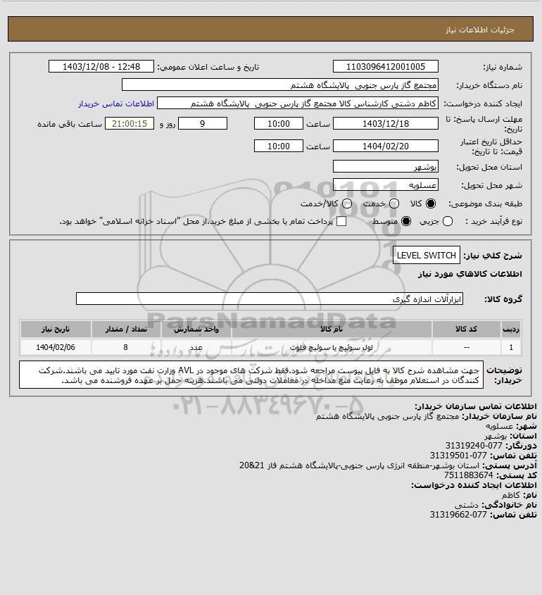 شرح کلی نیاز: LEVEL SWITCH