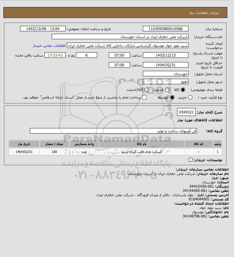 نام دستگاه خریدار:شرکت ملی حفاری ایران در استان خوزستان
