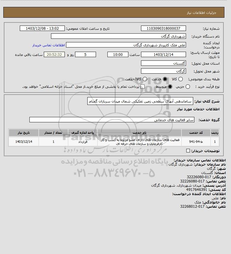 شرح کلی نیاز: ساماندهی آبهای سطحی زمین تفکیکی شمال میدان سربازان گمنام