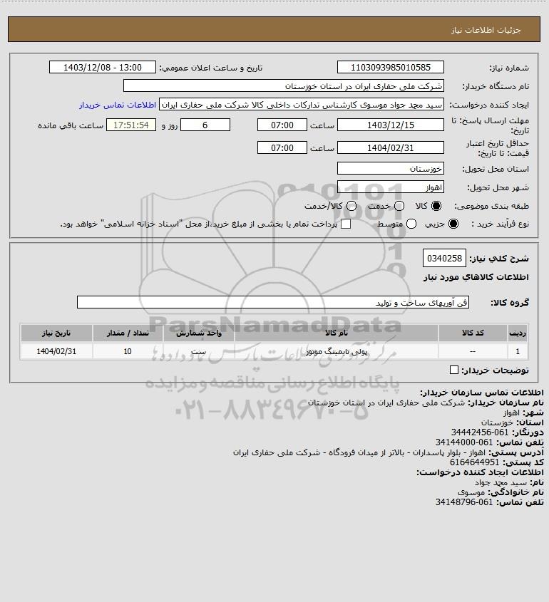 نام سازمان خریدار: شرکت ملی حفاری ایران در استان خوزستان