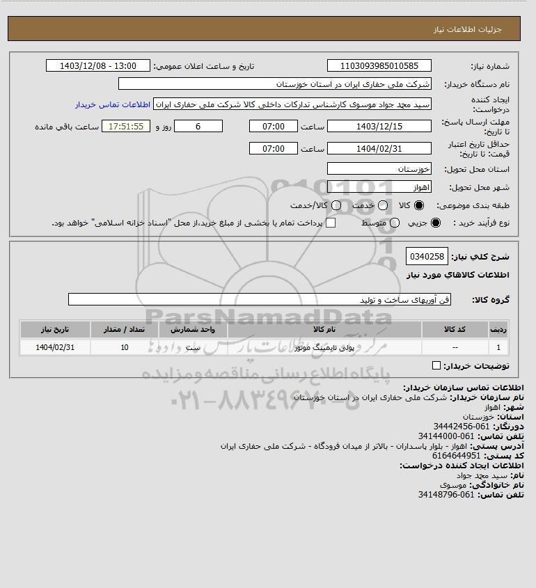 نام سازمان خریدار: شرکت ملی حفاری ایران در استان خوزستان