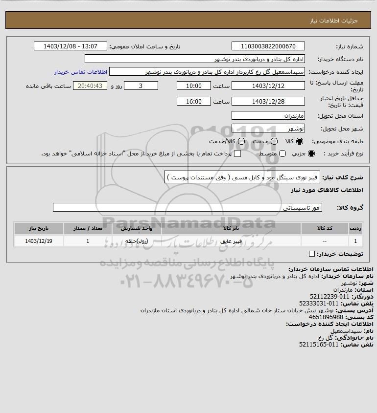نام دستگاه خریدار:اداره کل بنادر و دریانوردی بندر نوشهر