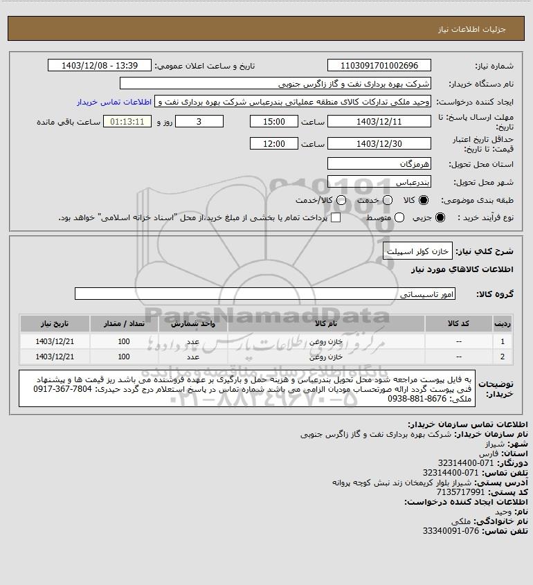 نام سازمان خریدار: شرکت بهره برداری نفت و گاز زاگرس جنوبی