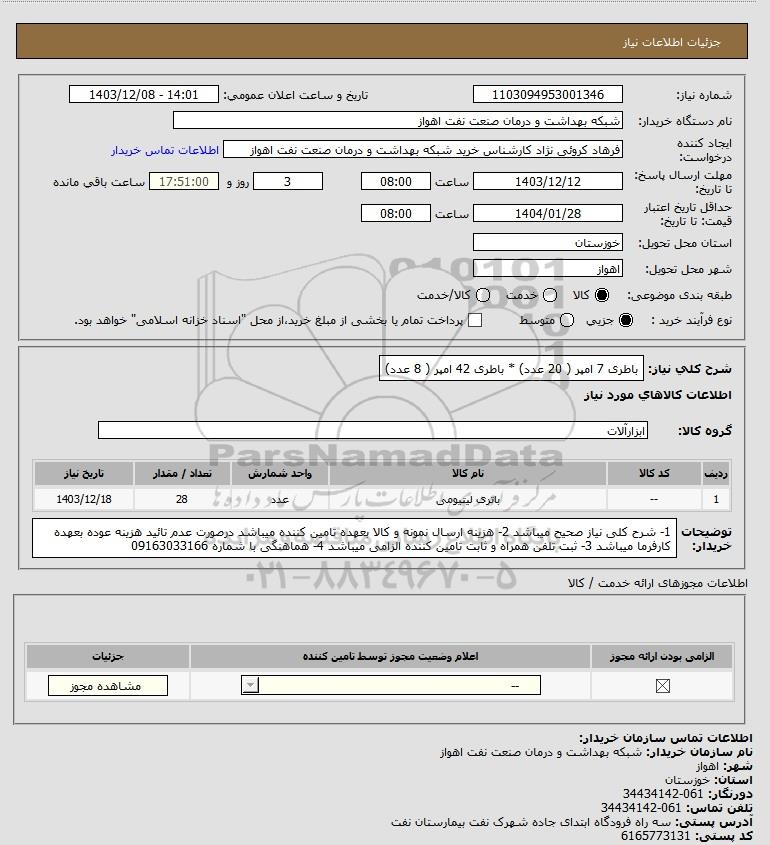 استعلام باطری 7 امپر ( 20 عدد) * باطری 42 امپر ( 8 عدد), استعلام باطری 7 امپر ( 20 عدد) * باطری 42 امپر ( 8 عدد)