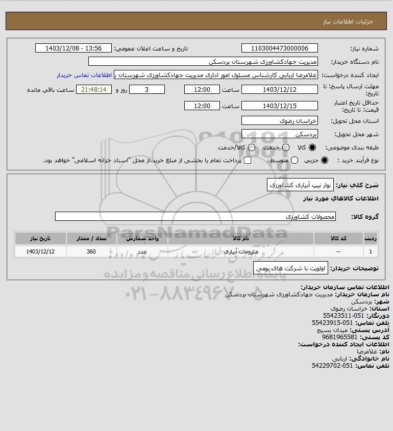 نام سازمان خریدار: مدیریت جهادکشاورزی شهرستان بردسکن