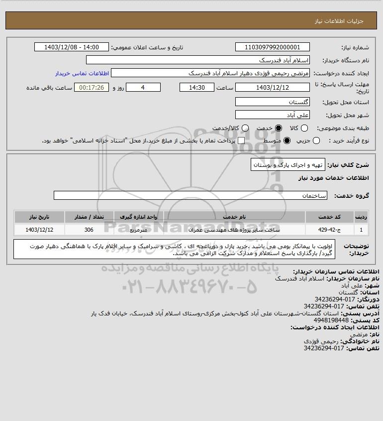 شرح کلی نیاز: تهیه و اجرای پارک و بوستان