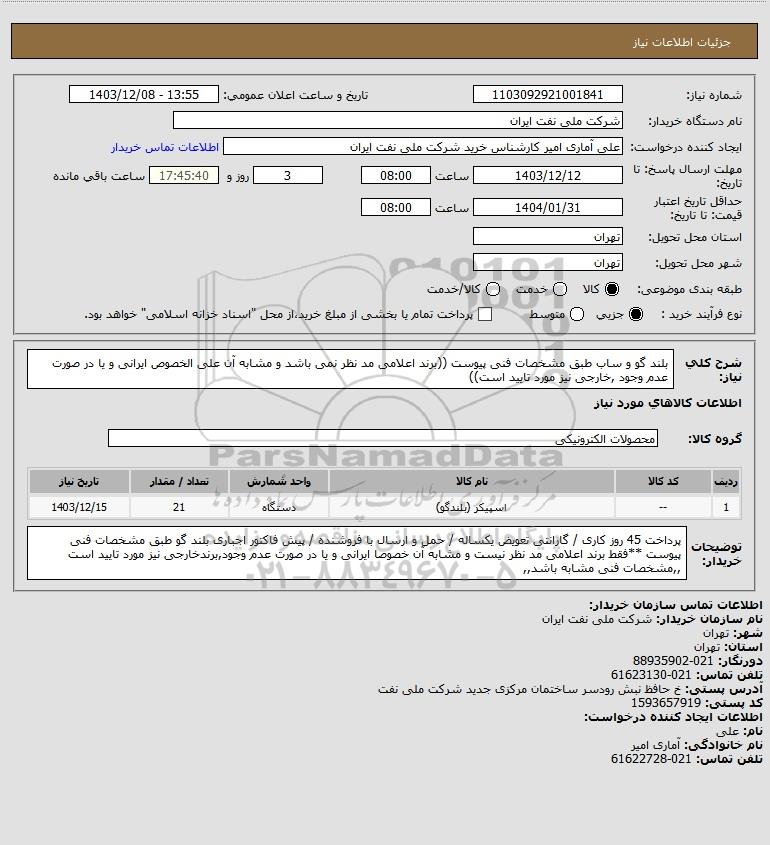 نام دستگاه خریدار:شرکت ملی نفت ایران