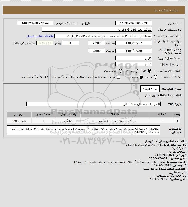 | 1 | -- | تسمه فولاد ضد زنگ نورد گرم | کیلوگرم | 1 | 1403/12/30 |