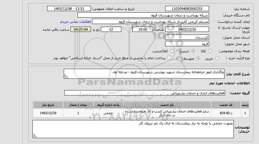 نام سازمان خریدار: شبکه بهداشت و درمان شهرستان قروه