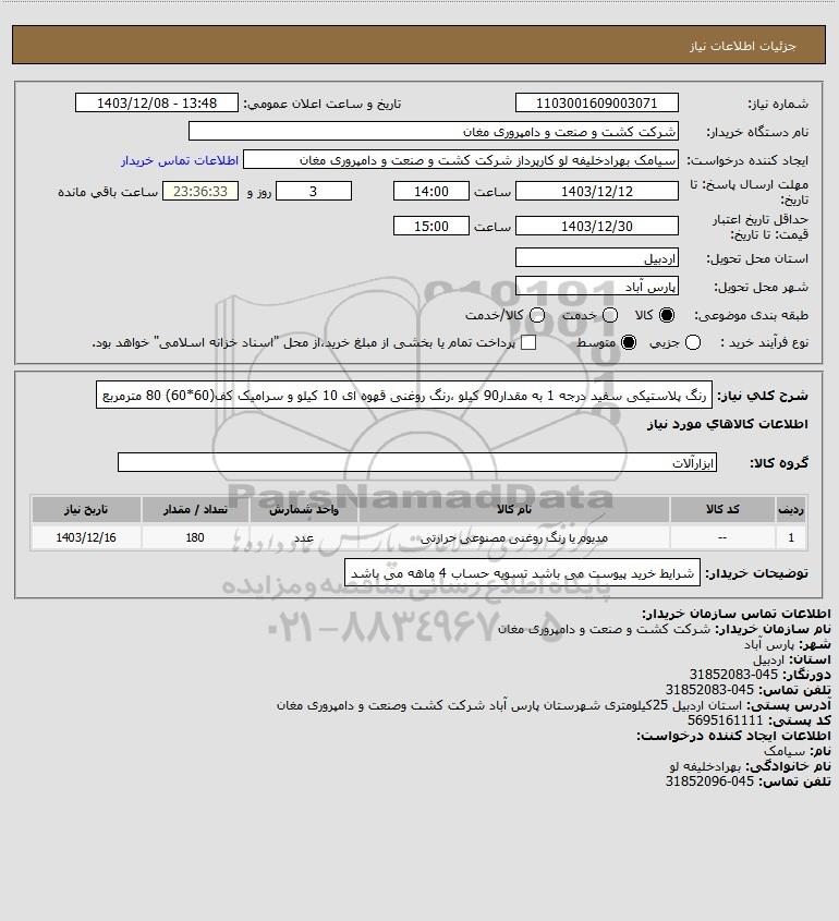 نام سازمان خریدار: شرکت کشت و صنعت و دامپروری مغان