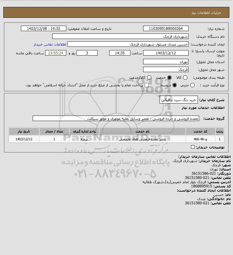 شرح کلی نیاز: خرید رنگ سرد ترافیکی