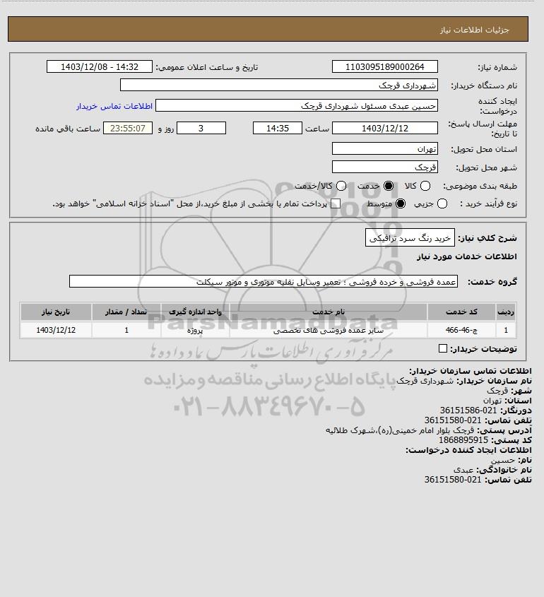 شرح کلی نیاز: خرید رنگ سرد ترافیکی