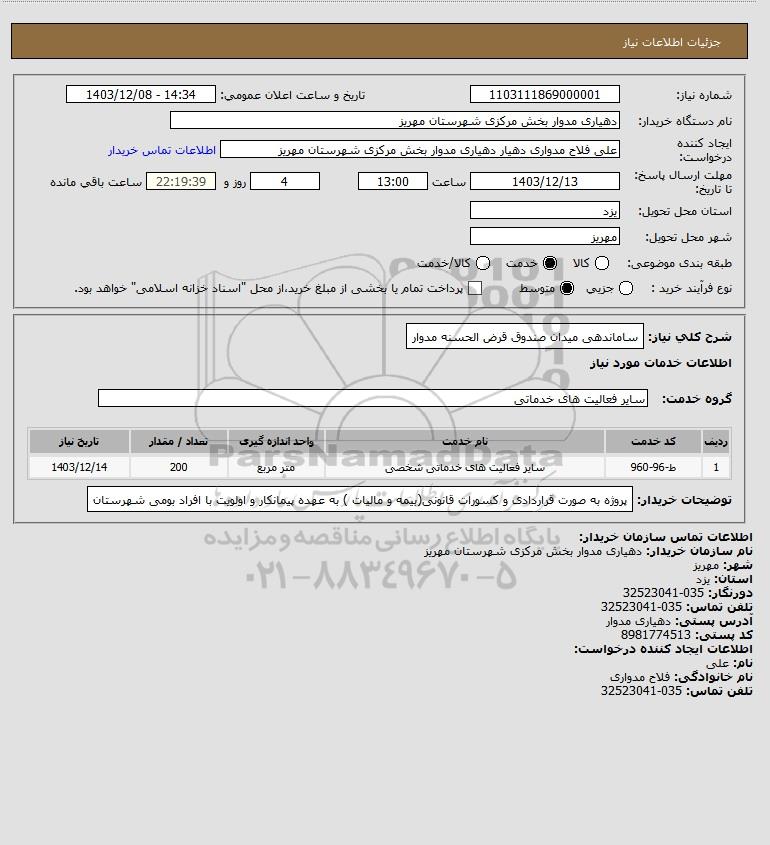 شرح کلی نیاز: ساماندهی میدان صندوق قرض الحسنه مدوار