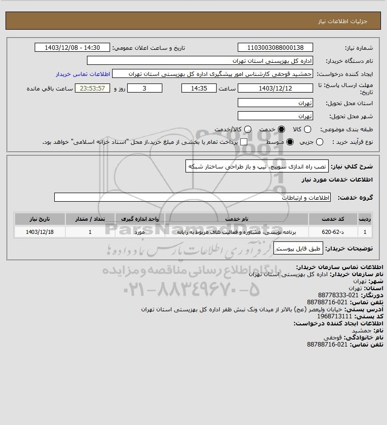 جهت دریافت اطلاعات کامل این آگهی به سامانه ستاد ایران مراجعه فرمایید