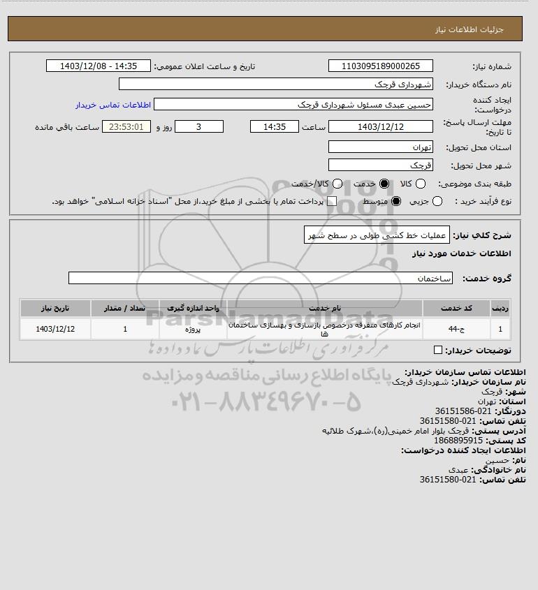 شرح کلی نیاز: عملیات خط کشی طولی در سطح شهر