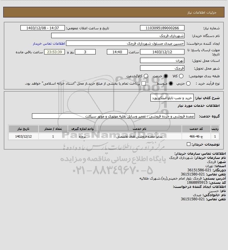 شرح کلی نیاز: خرید و نصب تابلو اسکوربورد