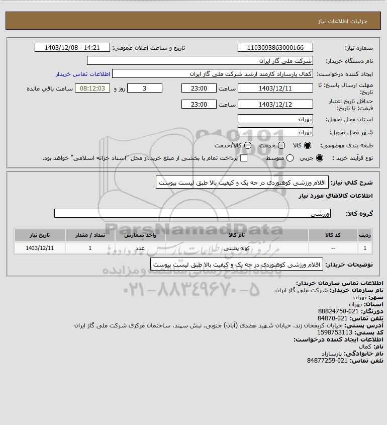شرح کلی نیاز: اقلام ورزشی کوهنوردی در جه یک و کیفیت بالا طبق لیست پیوست