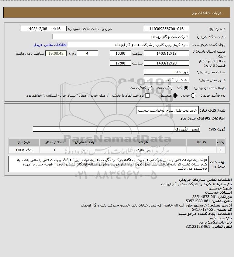 شرح کلی نیاز: خرید درب طبق شرح درخواست پیوست