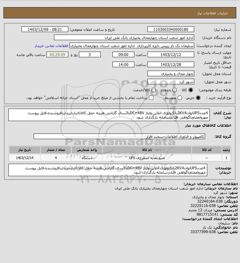 نام دستگاه خریدار:اداره امور شعب استان چهارمحال بختیاری بانک ملی ایران