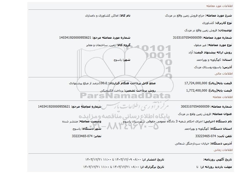 | شماره معامله: 3003107054000059 | شماره معامله مرجع: 140341920000955621 | |