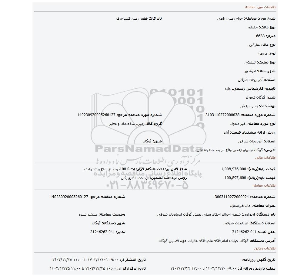 شماره مورد معامله: 3103110272000038شماره مورد معامله مرجع: 140230920005260127
