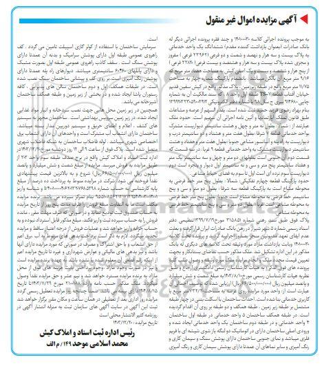 مزایده فروش ملک به پلاک 23820 فرعی از 5621 اصلی به مساحت 70 مترمربع