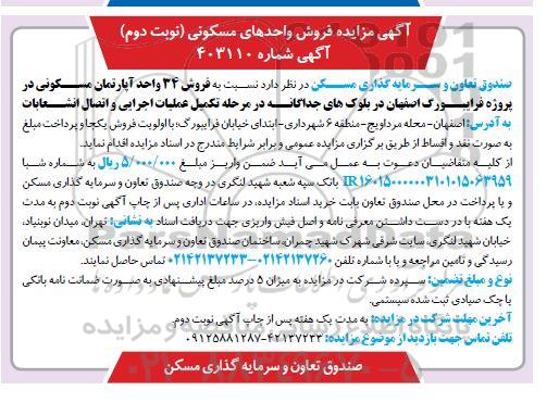 آگهی مزایده فروش واحدهای مسکونی نوبت دوم آگهی شماره 403110
