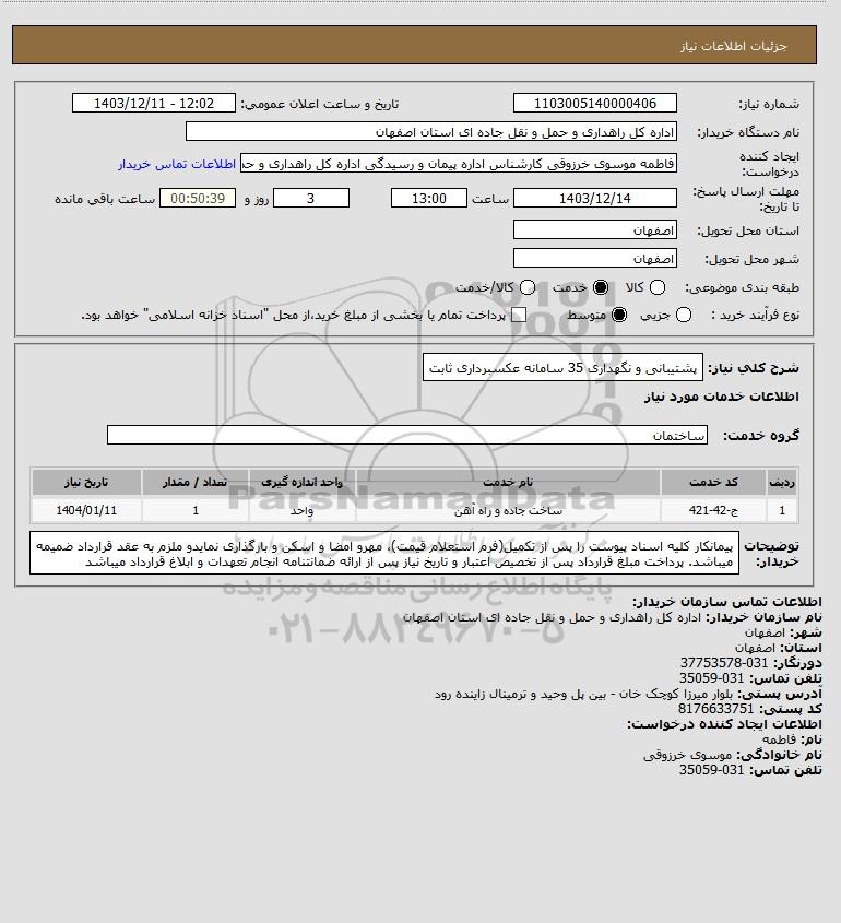 شرح کلی نیاز: پشتیبانی و نگهداری 35 سامانه عکسبرداری ثابت
