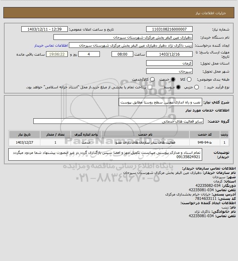 نام دستگاه خریدار:دهیاری عین البقر بخش مرکزی شهرستان سیرجان