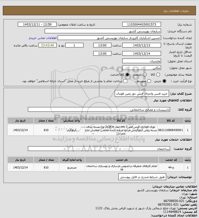 شرح کلی نیاز: خرید فنس واجرای فنس دور زمین فوتبال